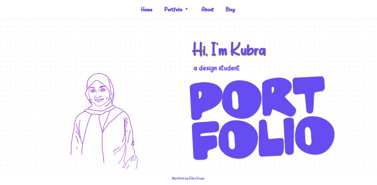 Online-Portfolio von Kübra Kurga – eine Übersicht über grafische Arbeiten, Designprojekte und persönliche Blogartikel, präsentiert in einem individuellen Webdesign